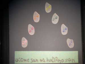 日ごろ使っているえんぴつに足跡を彫って色をつけました